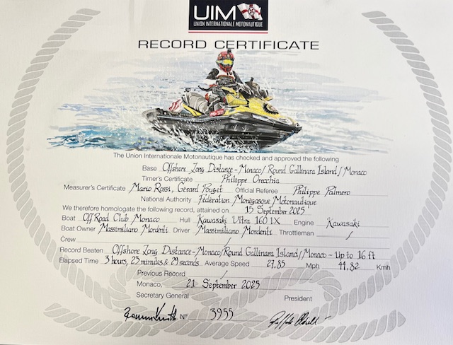 Another Monegasque representative on the international scene, Kilian Miano, took part in the UIM Aquabike Runabout GP4 World Championship in Olbia, Sardinia, gaining valuable experience at the highest international level.